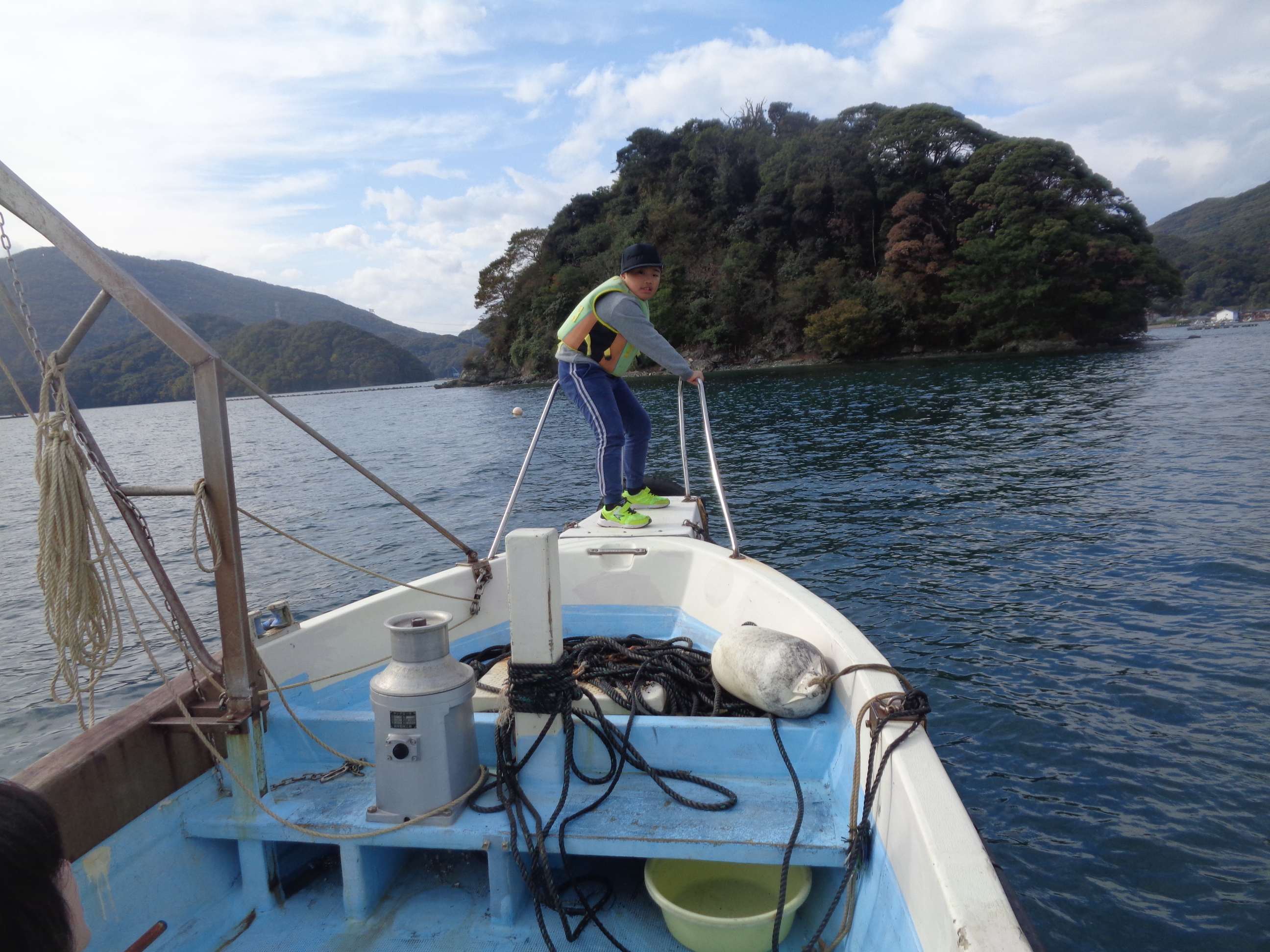 加茂郡 小原さんイカダで